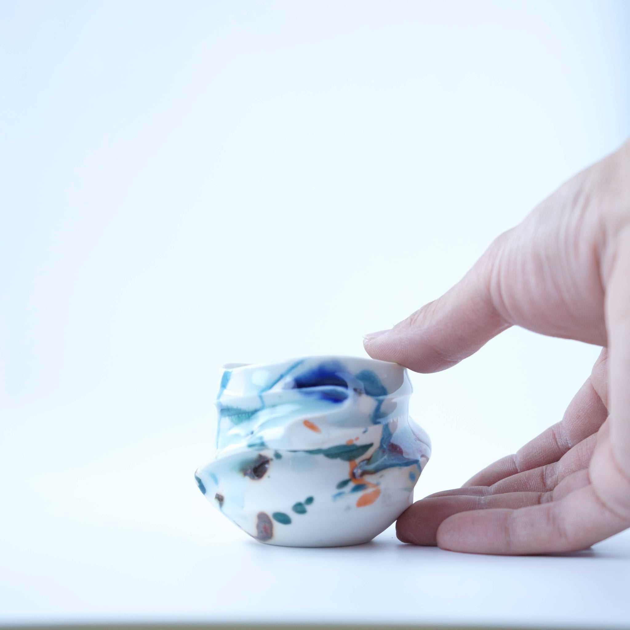 筆先に釉薬を付け、自由な気持ちで色をつけております。