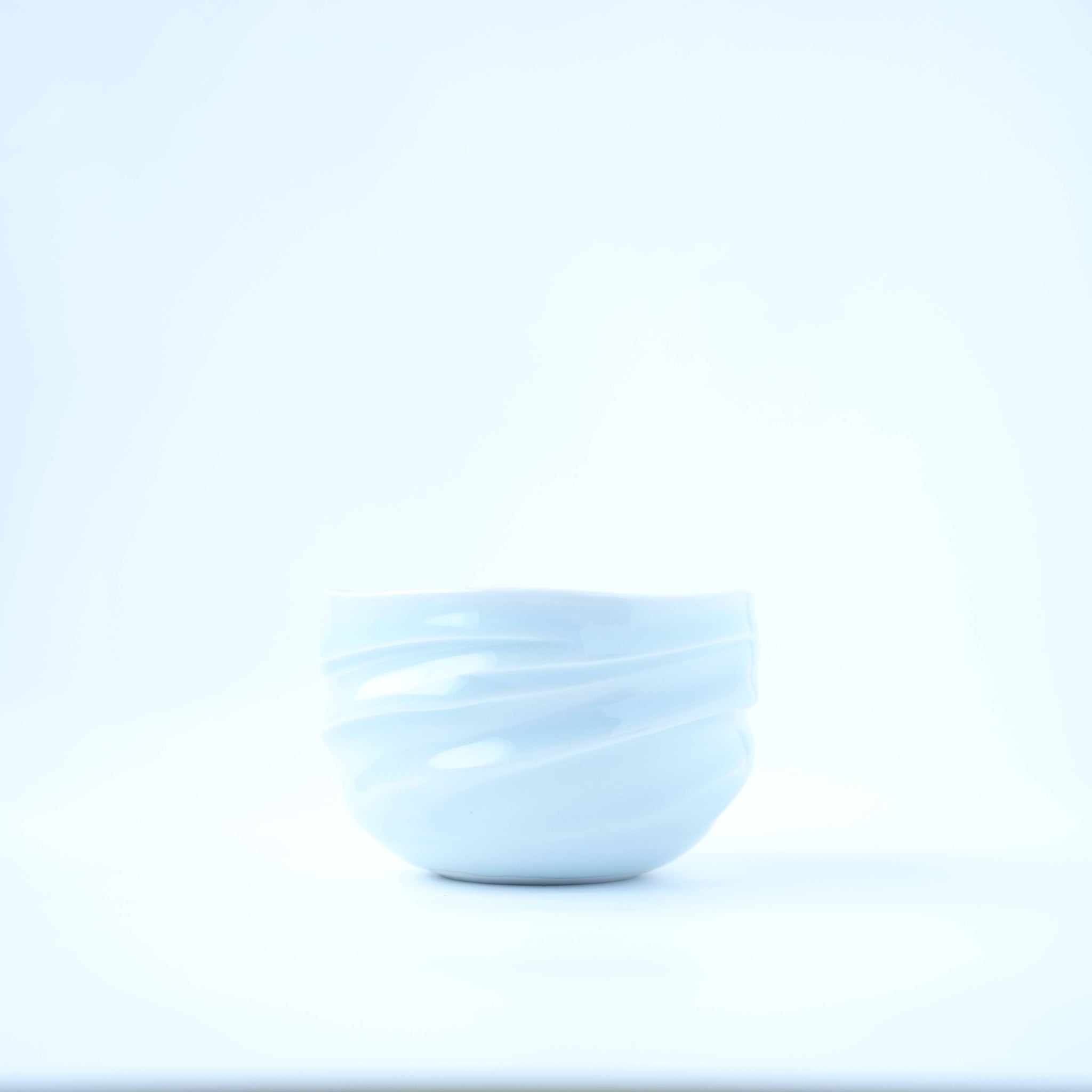 Gladdyで使用する青白磁釉は、独自に調合した石灰釉に鉄を数%加え、優しい透明感のある水色を目指して拵えています。