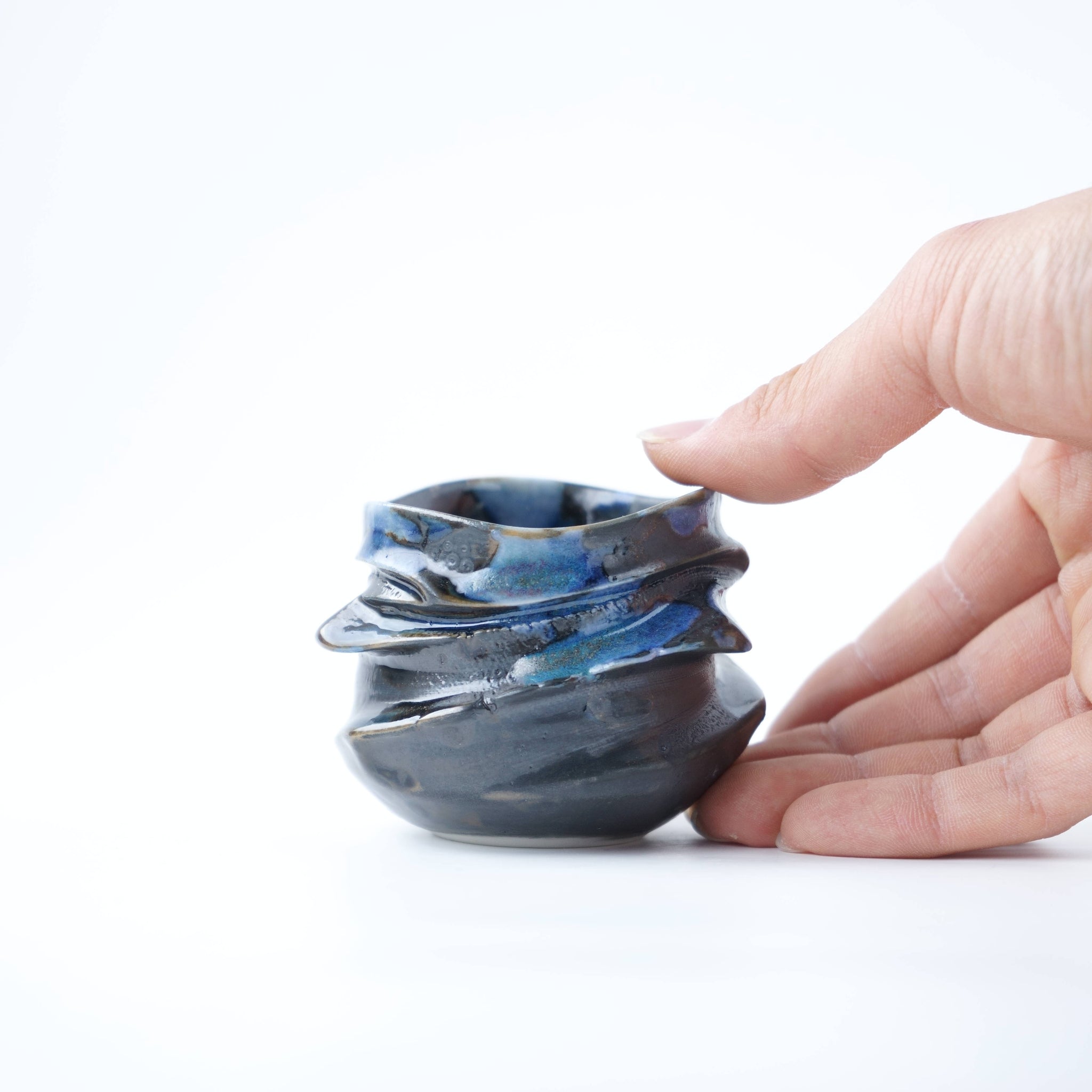 一見すると精悍な黒ですが、手にとって近くで眺めてみるとほんのり均窯の色合いも現れております。